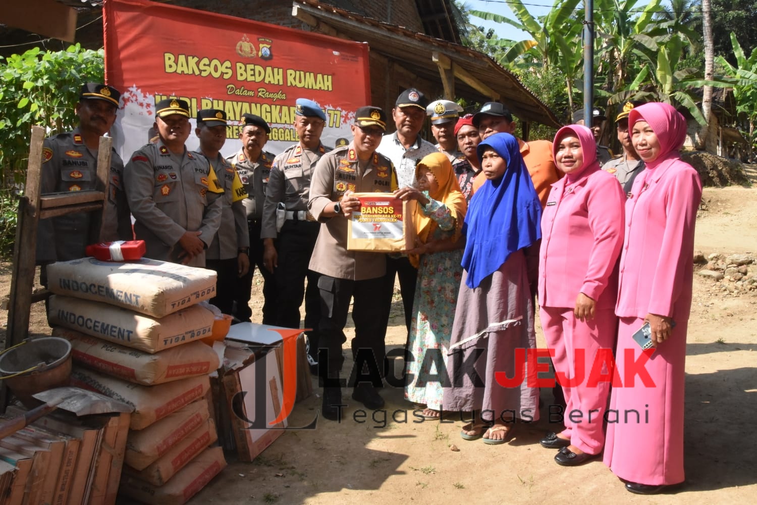 Disaksikan sejumlah pejabat dan warga yang hadir, AKBP Alith menyerahkan secara simbolis bantuan bedah rumah kepada Ibu Wakijah dilanjutkan dengan proses perbaikan rumah oleh sejumlah anggota bersama warga.