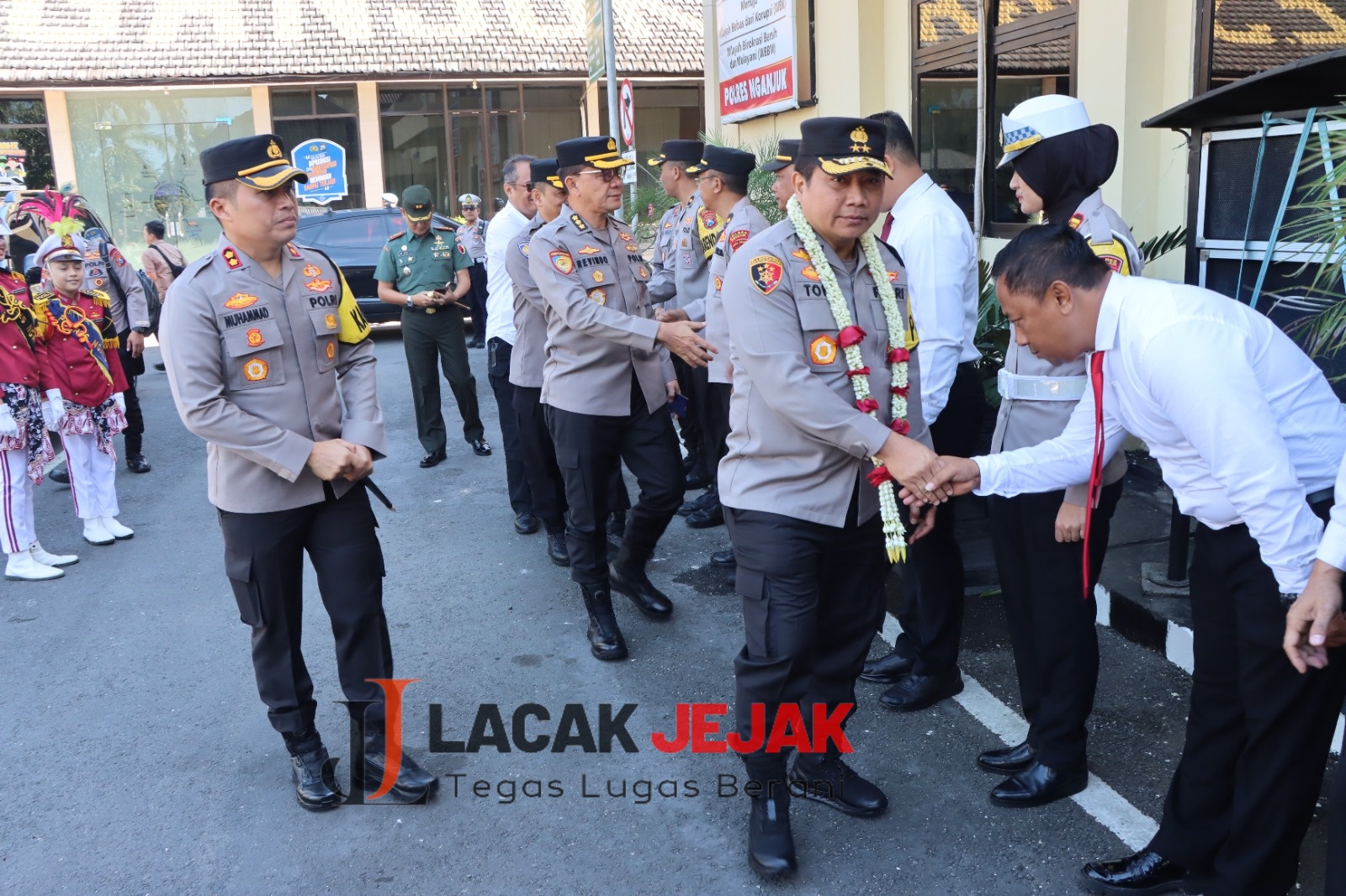 Kapolda Jatim hadir di Polres Nganjuk didamping oleh Karorena Polda Jatim, Kombespol Drs. Revindo, Kabidpropam Polda Jatim, Kombespol Imam Setiawan S.I.K., Kabidkeu Polda jatim Kombespol Srigustian S.H., M.H., Kabidlapfor Kombespol Sodiq Pratomo S.Si, M.Si., Dirtahti Polda Jatim Kombespol Eka Yekti Hananto Seno S.I.K.(Hms/Ded)
