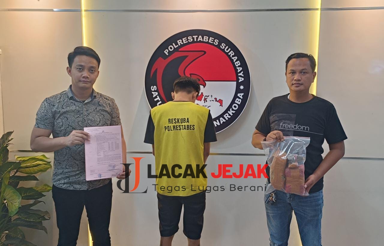 Surabaya Lacakjejak.id – Satnarkoba Polrestabes Surabaya menangkap satu pengedar narkoba jenis, ganja dan pil koplo di depan rumah Jalan Ubi Jagir Wonokromo Kota Surabaya.