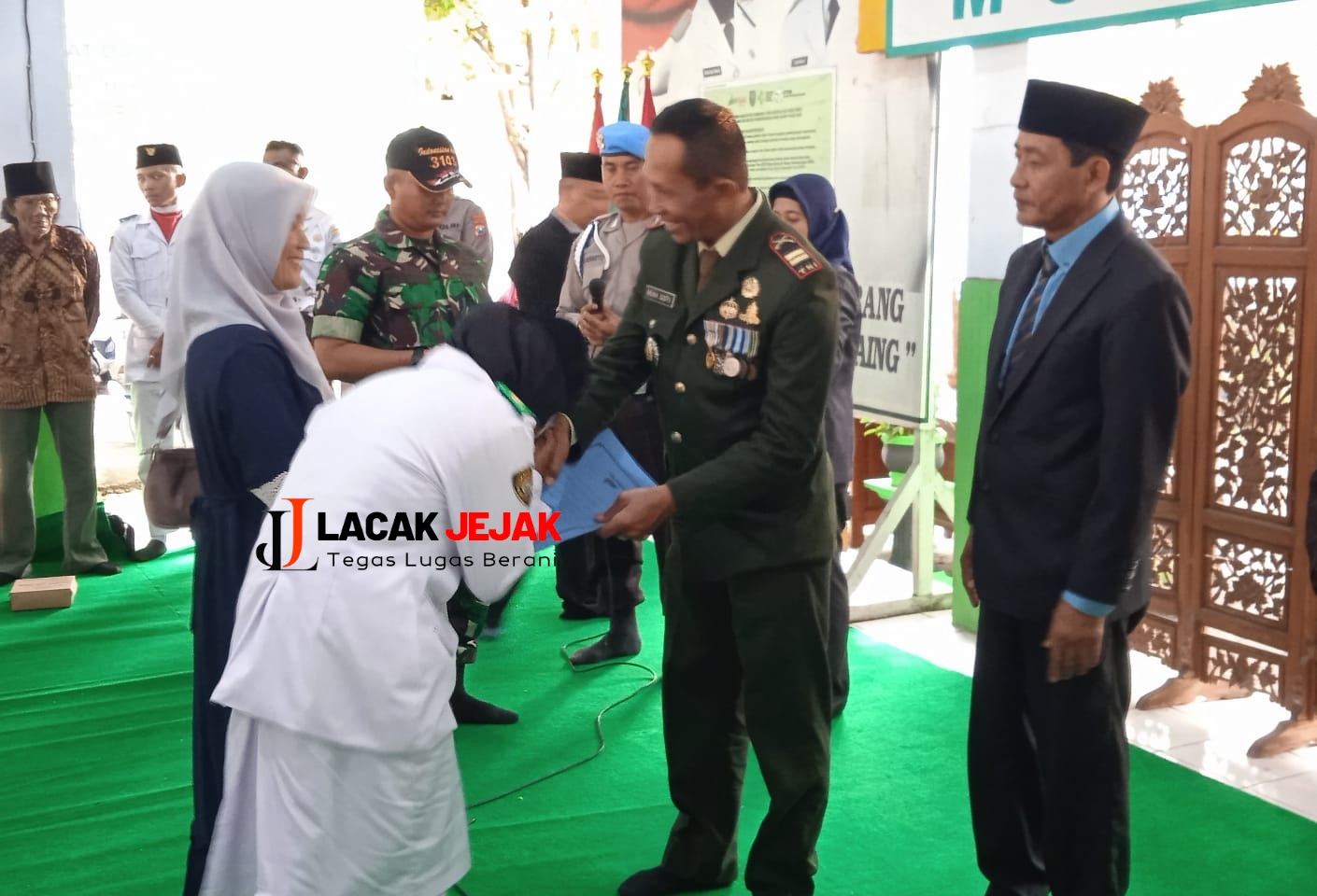 Jombang Lacakjejak.id – sebagai ucapan tanda Terima kasih kepada Pasukan Pengibar Bendera ( Paskibra) Camat Mojowarno Kabupaten Jombang, berikan sertifikat kepada anggota Paskibra sebanyak 35 personel