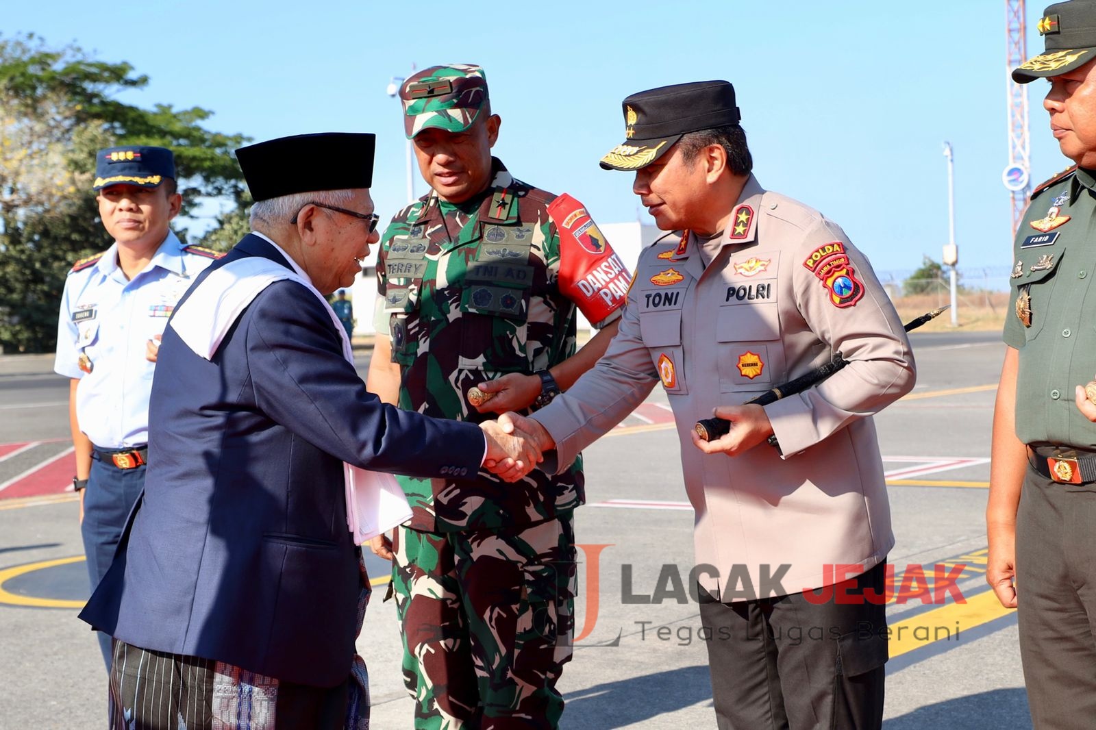 Kapolda Jatim Irjen Pol Toni Harmanto bersama Pangdam V Brawijaya turut mengawal hingga pesawat rombongan Wapres RI lepas landas bertolak kembali Jakarta.