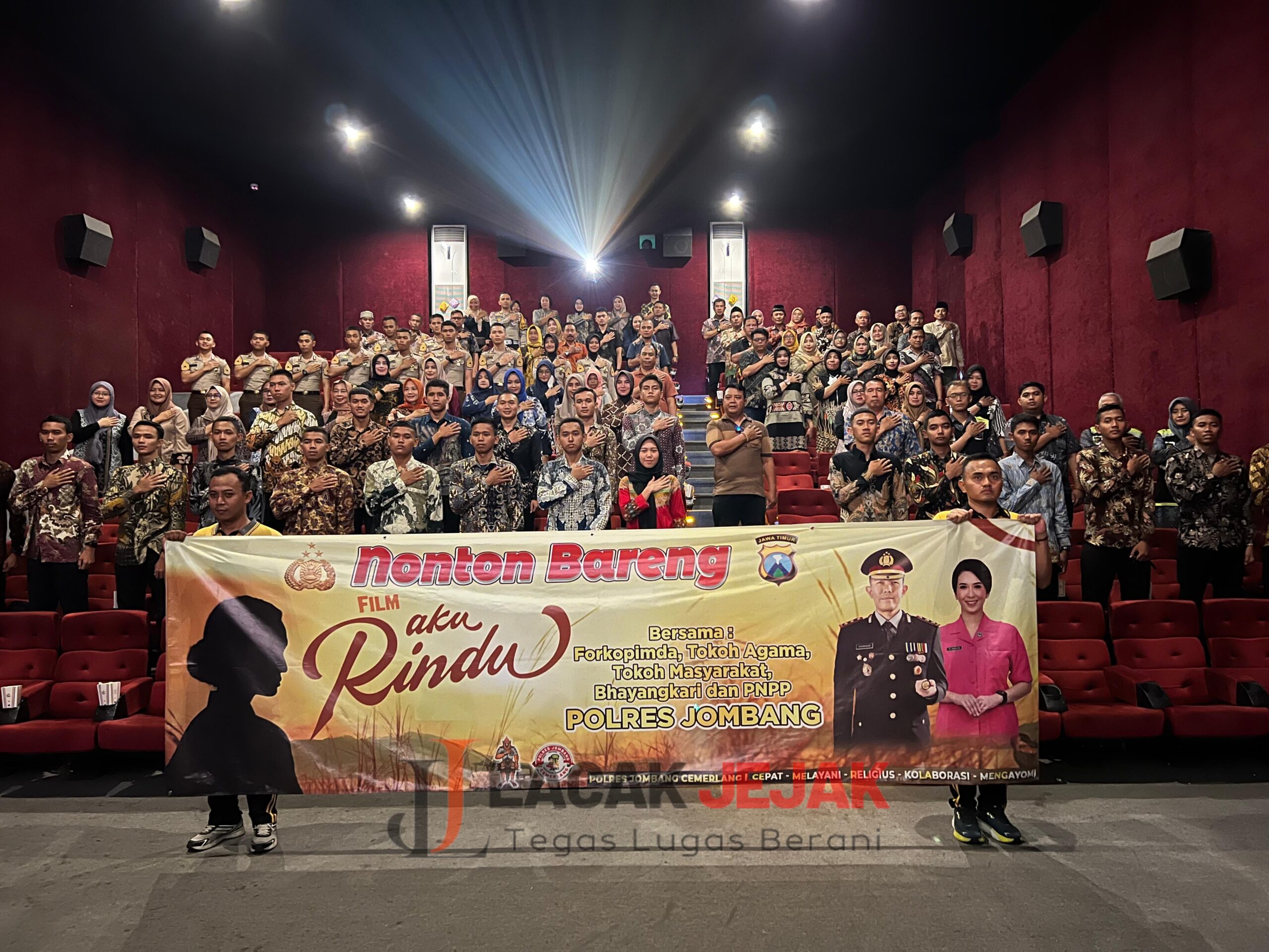 Jombang Lacakjejak.id – Polres Jombang mengadakan nonton bareng (Nobar) Film ‘Aku Rindu’ bersama warga Kota Santri. Kegiatan tersebut dalam rangka memperingati Hari Kesatuan Gerak Bhayangkari (HKGB) ke 71 tahun 2023.