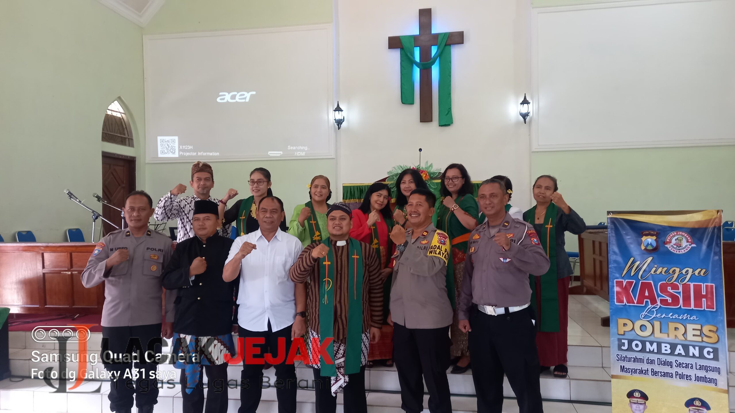 Jombang Lacakjejak.id – Program rutin untuk selalu menjalin komunikasi dan harmonisasi dengan berbagai kalangan dan kelompok, mulai dari audensi, Jumat Curhat, dan minggu kasih selalu diagendakan, oleh Polres Jombang pada hari ini Minggu, 5 November 2023 ini giliran giat Minggu Kasih di GKJW Wonosalam.
