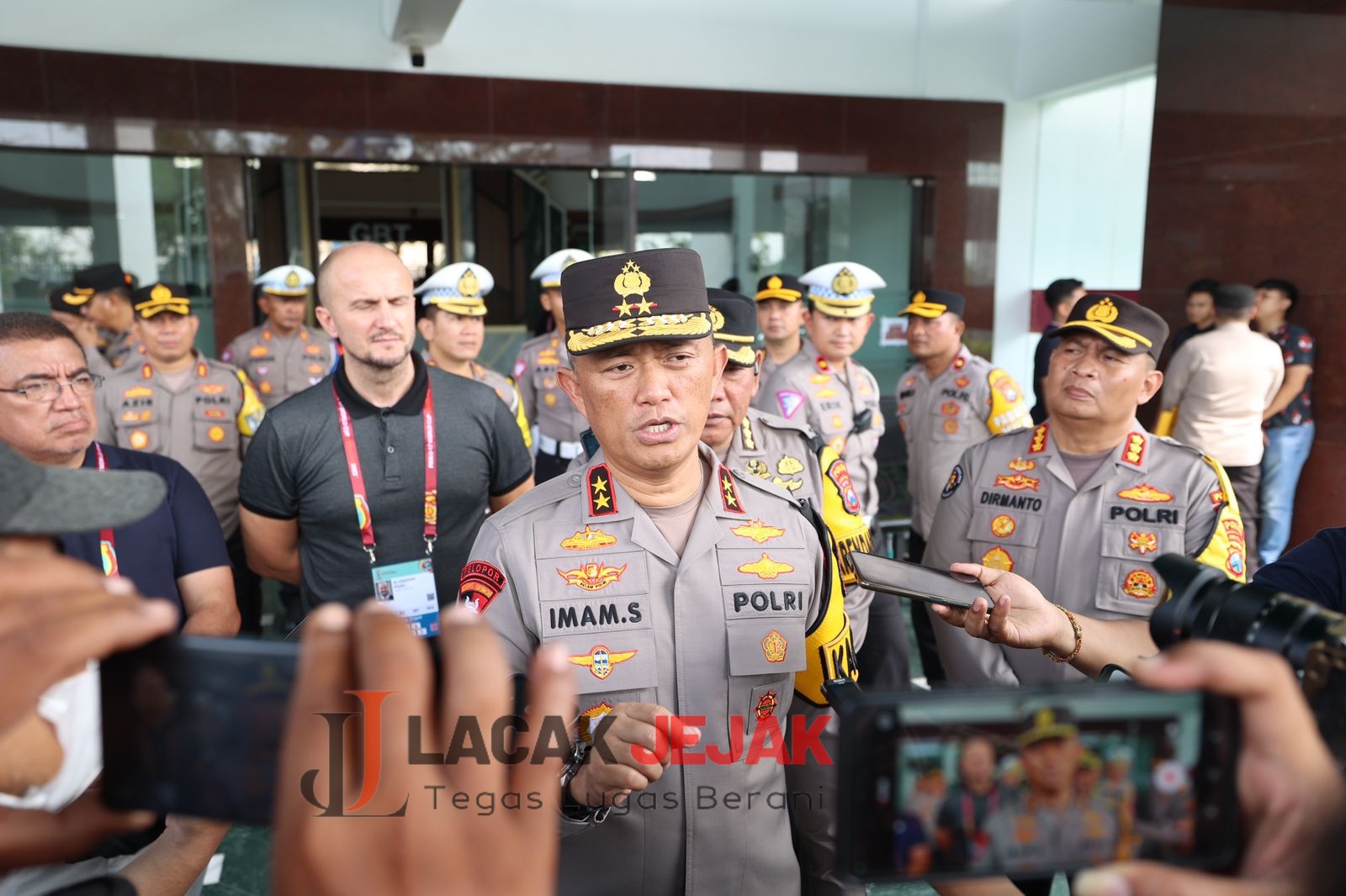 “Kita doakan semua berjalan lancar, aman, nyaman,” pungkas Irjen Pol Imam Sugianto di stadion GBT.