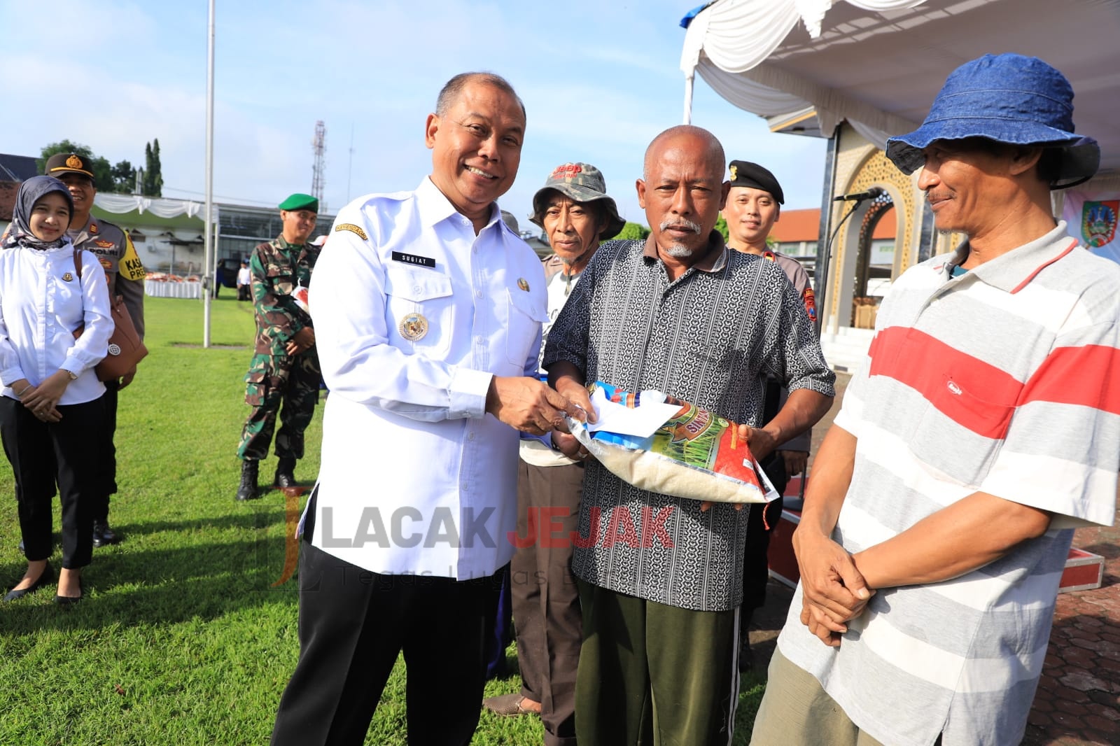 Secara simbolis bantuan berupa beras seberat 5 Kg dan uang tunai Rp 100.000 ( seratus ribu rupiah) diserahkan oleh Pj Bupati Jombang Sugiat, S.Sos, M.Psi.T yang didampingi Forkopimda Kabupaten Jombang, Sekretaris Daerah Kabupaten Jombang dan para Kepala OPD terkait lingkup Pemkab Jombang.
