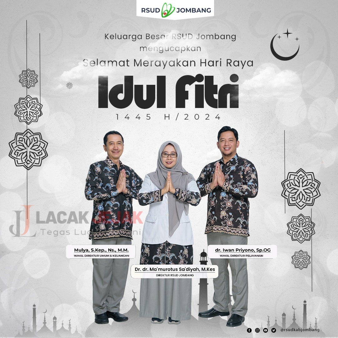 Keluarga Besar RSUD Jombang Mulai dari Pimpinan (Direktur), Staf dan karyawan mengucapkan SELAMAT HARI RAYA IDUL FITRI 1445 H / 2024 M
