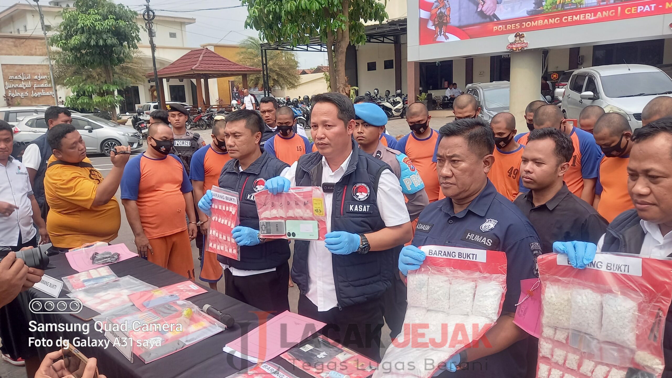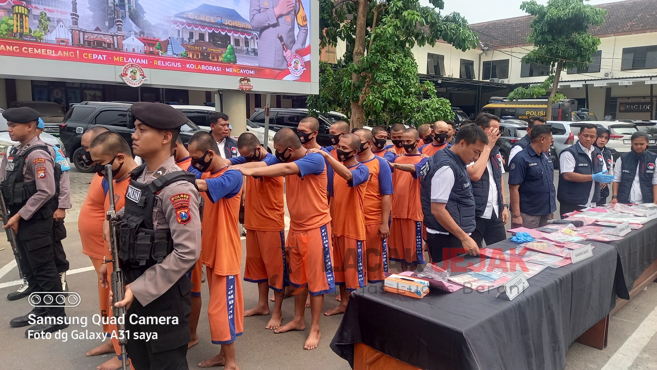 Sementara 30 orang tersangka sudah ditahan di sel tahanan Polres Jombang,pelaku dijerat dengan pasal 114 ayat (1) subs pasal 112 ayat (1) UU RI No 35 tahun 2009 tentang narkotika dan pasal 435 Jo 436 ayat 2 UU RI No 17 tahun 2023 tentang kesehatan, dengan ancaman pidana 6(enam) tahun sampai 20(dua puluh) tahun penjara.(Jit)