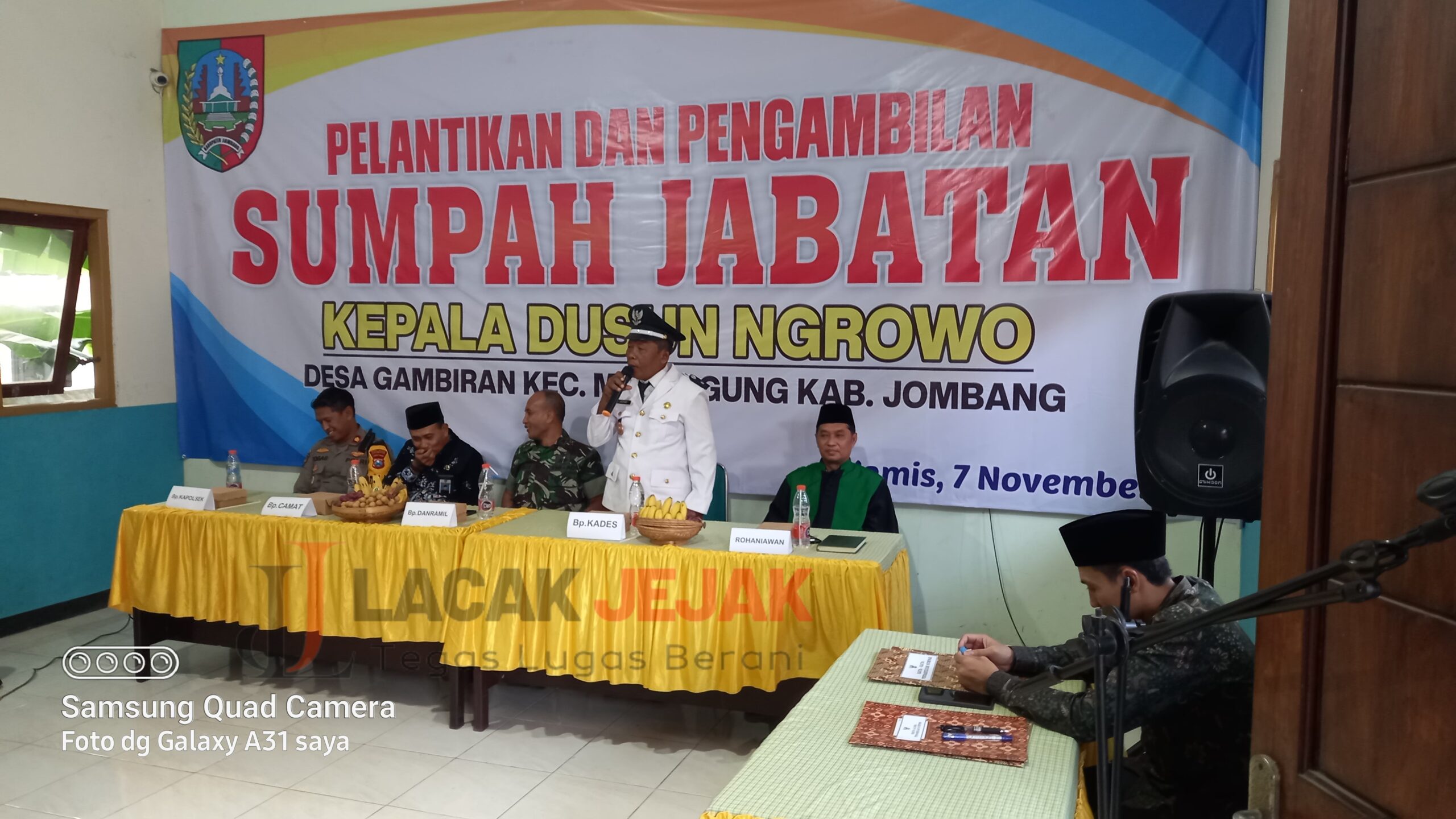 Jombang Lacakjejak.id -Telah dilaksanakan pengambilan sumpah jabatan dan pelantikan perangkat desa baru yang menjabat sebagai Kepala Dusun Ngrowo yang bertempat di Balai Desa Gambiran Kecamatan Mojoagung, Kabupaten Jombang pada, Kamis (7/11)