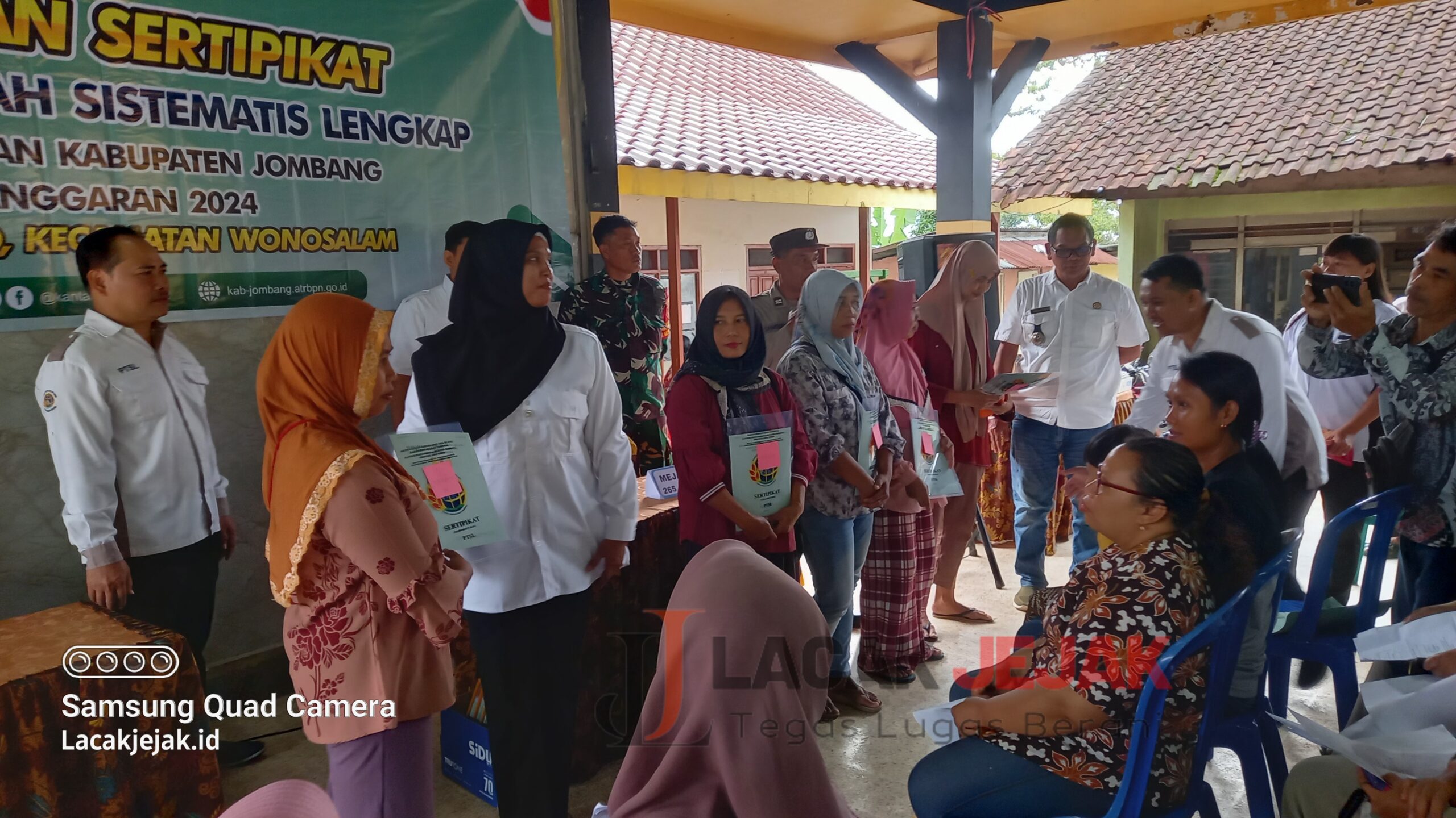 Selain itu nampak hadir dalam acara tersebut yakni Kepala Desa Galengdowo Wartomo beserta Babinsa dan Babinkamtibmas, Panitia PTSL Mastur efendi, Perangkat Desa, BPD.dan Tokoh Masyarakat, serta warga pemohon sertifikat yang kali ini bukti fisiknya sudah siap dibagikan atau diserahkan.Rabu (08/01)