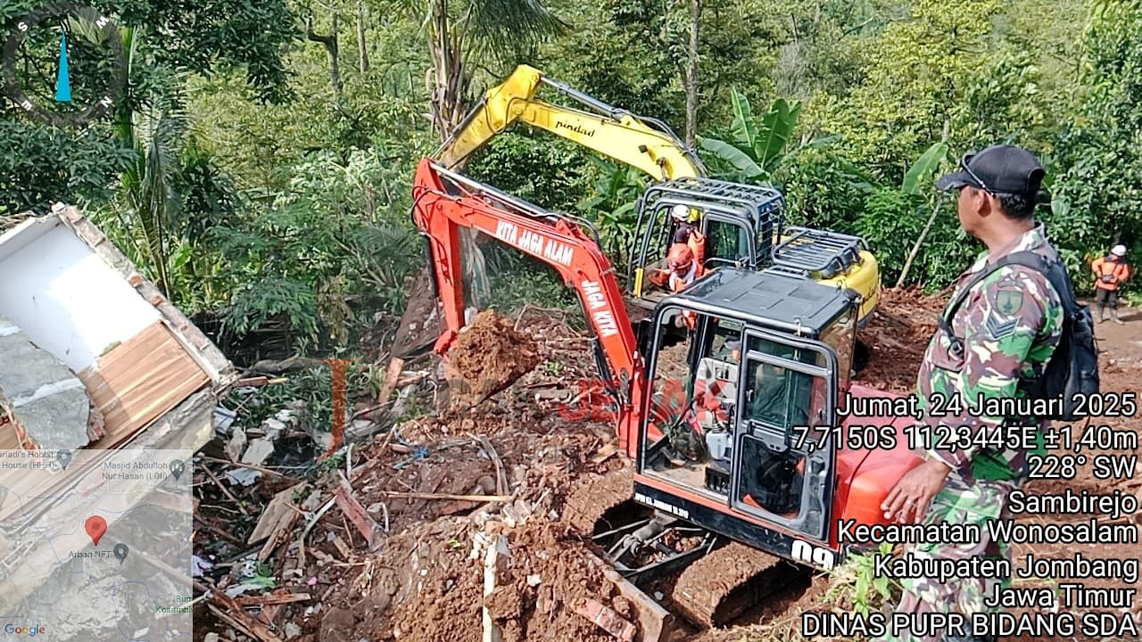 Usai kabar longsor Sambirejo Wonosalam menyebar, pihak Dinas Pekerjaan Umum dan Penataan Ruang (PUPR) Kabupaten Jombang segera bergabung melakukan upaya penyelamatan dan evakuasi korban.Dalam upaya ini, Dinas PUPR Jombang menggunakan sejumlah alat berat, peralatan manual, dan dukungan personil. Cuaca buruk dan ketebalan material longsor, sempat memperlambat pencarian korban dan proses evakuasi.