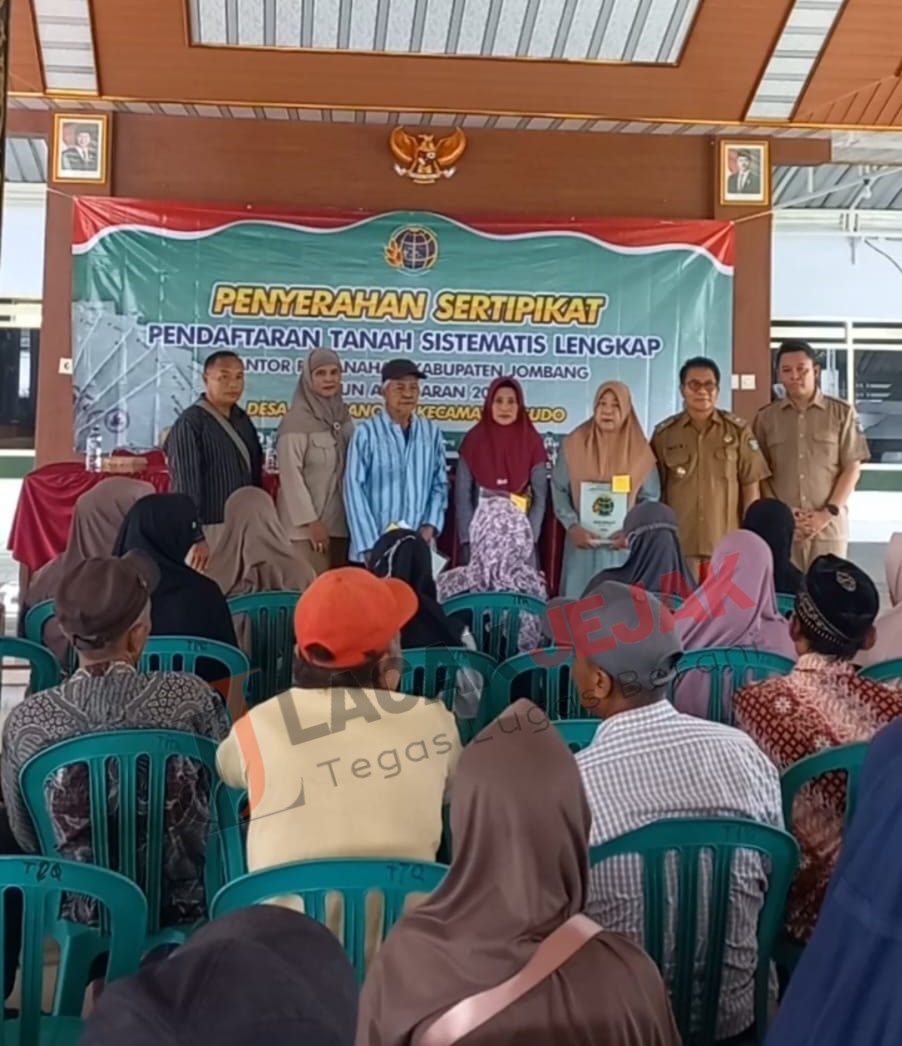 Jombang Lacakjejak.id – Program Pendaftaran Tanah Sistematis Lengkap (PTSL) Tahun 2024, resmi diserahkan kepada masyarakat Desa Krembangan Kecamatan Gudo Kabupaten Jombang, secara keseluruhan dari jumlah total 1413 bidang.