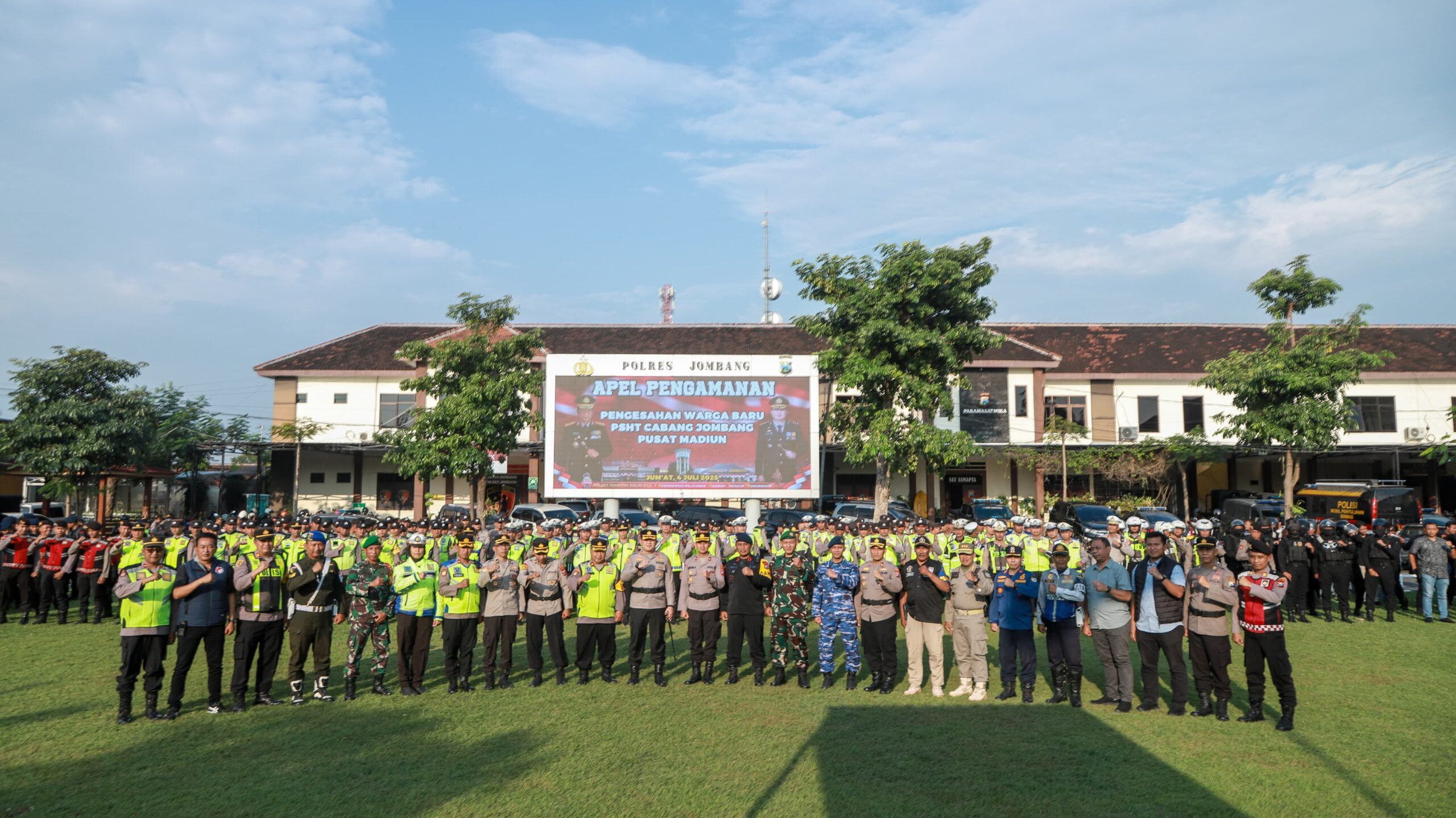 Kegiatan pengamanan diawali dengan menggelar apel gabungan di lapangan Mapolres, yang diikuti Ratusan personel yang terdiri dari 453 personel Polres Jombang, 1 Kompi BKO dari Brimob Polda Jatim, TNI dari Kodim 0814 Jombang, Unit Subdenpom, Satpol PP, Dishub serta Pamter PSHT Cabang Jombang.