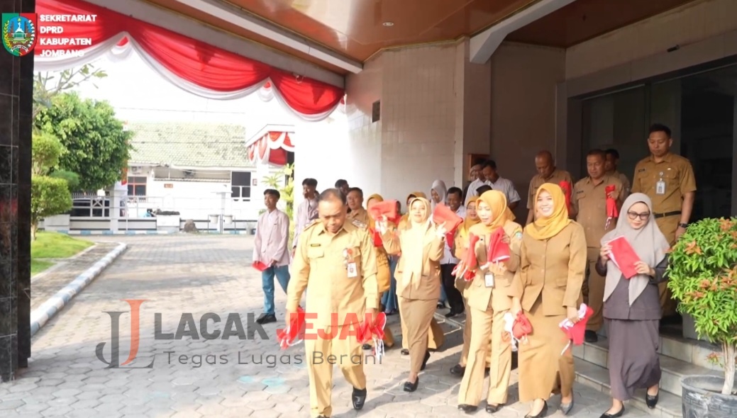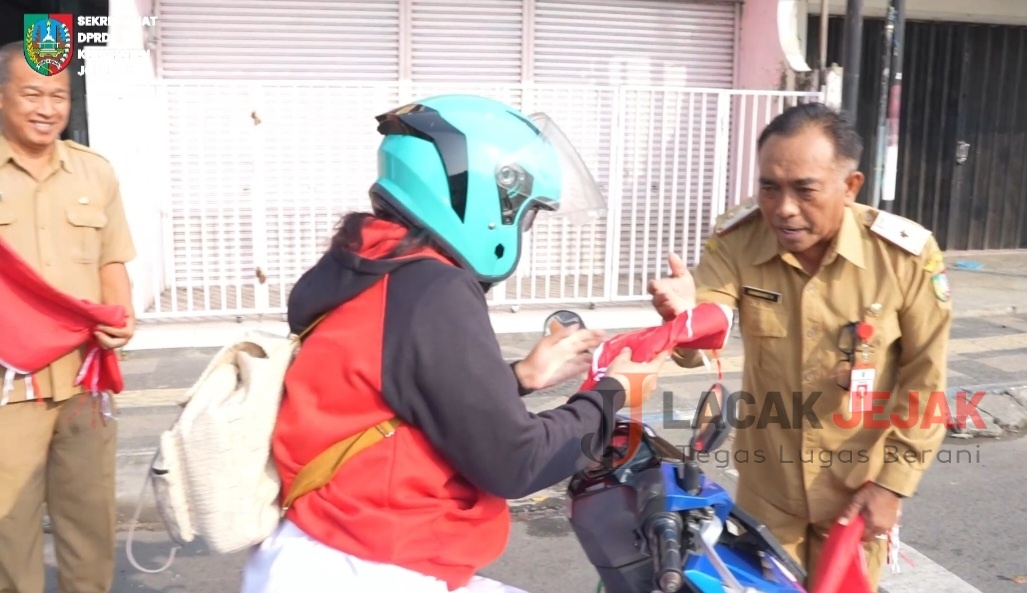 Jombang Lacakjejak.id– Dalam rangka ikut ambil bagian menjelang peringatan Hari Kemerdekaan Bangsa Indonesia ke-80 pada tanggal 17 Agustus2025, Dewan Perwakilan Rakyat Daerah (DPRD) Kabupaten Jombang menggelar acara pembagian bendera merah putih kepada masyarakat.