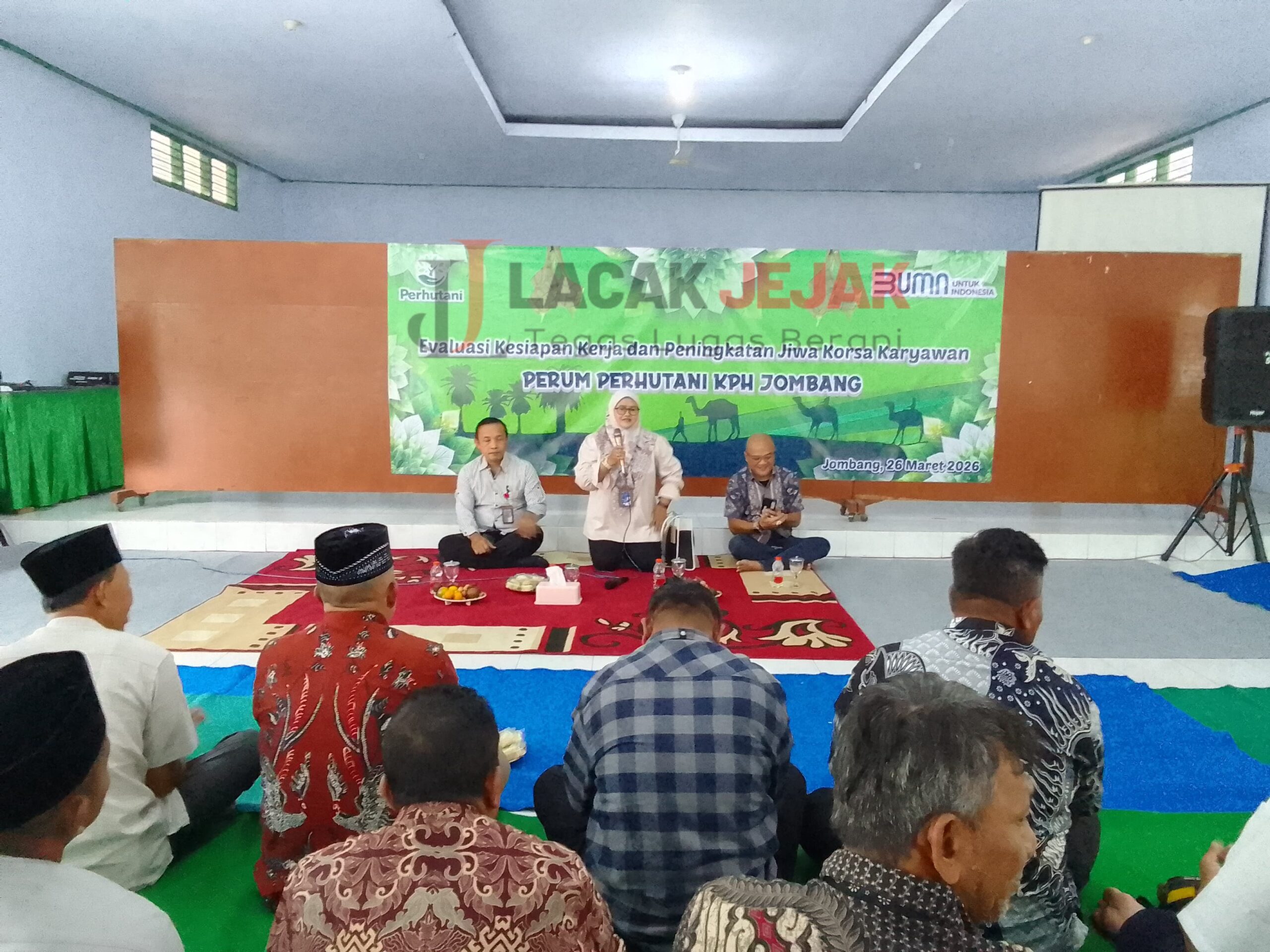 JombangLacakjejak.id – Perhutani melalui Kesatuan Pemangkuan Hutan (KPH) Jombang, di momen idul Fitri 1447 H, tingkatkan jiwa Korsa lakukan pembinaan karyawan, dan sampaikan pesan Dirut (Direktur Utama) Perum Perhutani yang baru “Tio Handoko”. berlangsung di gedung Perhutani KPH Jombang, Kamis (26/03).