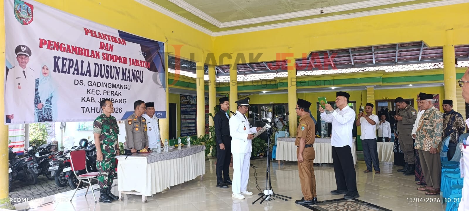 Jombang Lacakjejak.id – Kepala Desa Gading Mangu, M. Golkar, secara resmi melantik Hendrik Nova Arindra sebagai Kepala Dusun (Kasun) Mangu Sebagai babak baru dalam tata kelola pemerintahan di Desa Gading Mangu pada Rabu (15/04)